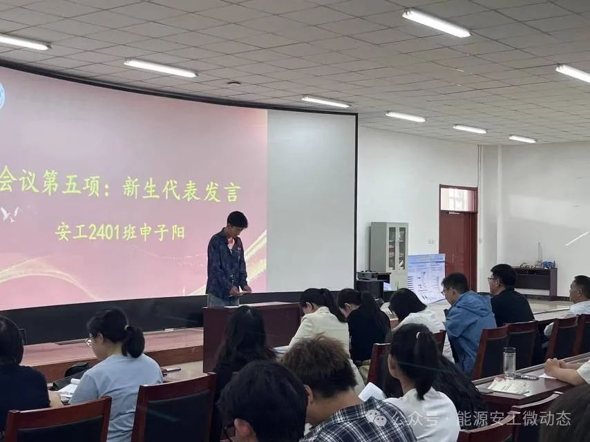学生代表申子阳同学就他的自我理想和志向发言:安全工程为我提供了一个新的平台,除了对专业知识的学习,还可以参加各种实践活动来提升我的实践能力和团队协作能力。我将通过参与社团活动、体育锻炼等方式,培养自己的兴趣爱好,提升自我管理能力,成为一个有责任感的人。在学习、工作和生活中,我都会认真负责,并且培养良好的团队合作精神,在大学生活中与同学们一起合作,共同完成各种项目和任务,以团队的力量实现更大的成就。