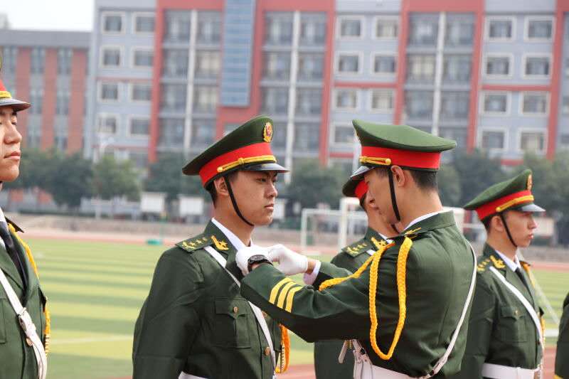 号令员洪亮的口号声,掷地有声的踢步,整齐划一的摆臂,排列整齐的队伍,协调一致的频率,训练有素的国旗护卫队向国旗台走来。旗手送旗,插旗,抛旗,五星红旗在高亢激昂的国歌中冉冉升起。然而,整齐的步伐、板正的身姿,绝非一朝一夕练就。
