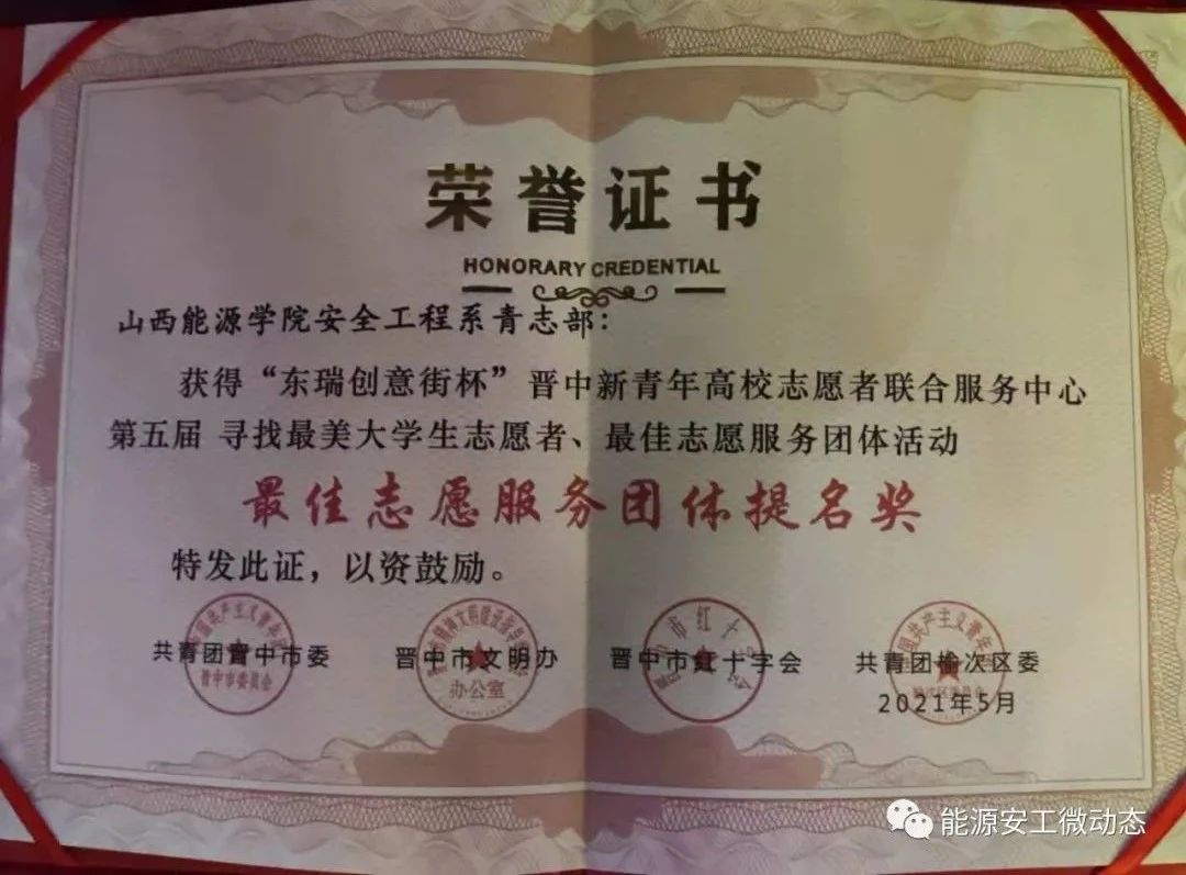 在过去这一年中,我系青志部积极参与各类志愿活动,传递爱心,传播文明,组织公益观影活动,组织参加“美丽山西.青春行动”的爱绿,植绿,护绿志愿活动,增强了大家环境保护的意识,为建设绿色地球家园做出自己的一份贡献,参加“青春红丝带,防艾宣传”活动,为大家科普了艾滋病的知识,参加了“学党史,强信念”主题演讲活动,让大家更加坚定自己一心向党的决心,此外,还参加了各类公益活动,为我系公益事业添上了浓墨重彩的一笔。