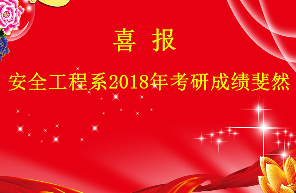 随着2018年硕士研究生入学考试成绩揭晓,安全工程系频传喜报。2104级安全工程专业共76人,其中32人参加2018年全国硕士研究生考试,25人达国家线,达线率为78%。以下是考研成绩: