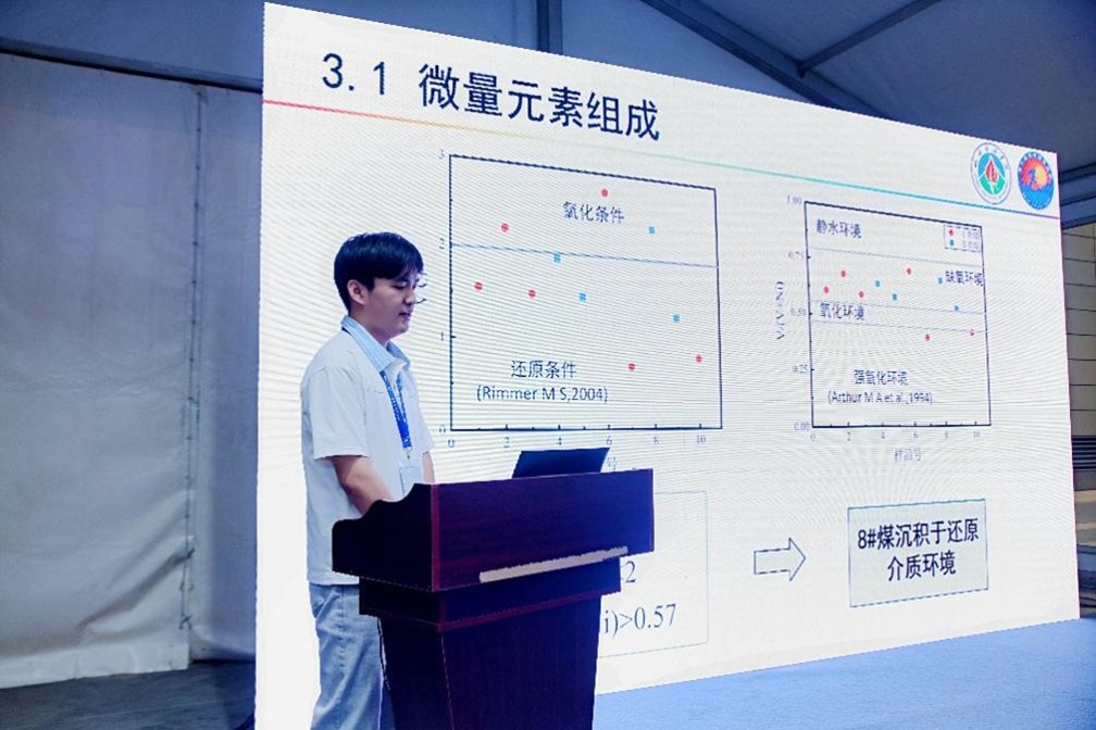 我系王晓霞老师和田政同学基于“双碳”背景下的煤炭综合开发利用需求,结合我省煤炭产业发展方向,做了煤系伴生战略金属锂-稀土矿成矿机制的研究报告。王晓霞老师在地球化学(碱金属同位素的分析方法和地质应用)专题呈现了“含煤地层中锂的赋存方式及成矿意义”的精彩报告,研究中创新性的运用了锂同位素的方法引发热烈讨论。田政同学在矿产与资源(低品质矿产(煤系等)伴生关键金属赋存、高效提取利用与环境影响示踪)专题汇报了关于“阳泉矿区8#煤层微量元素地球化学特征及地质意义”的报告,获得台下老师和同学们的一致认可。