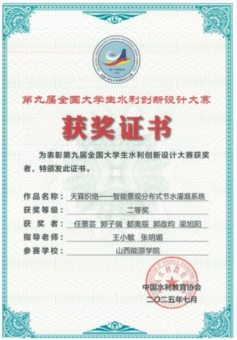 近日,第九届全国大学生水利创新设计大赛在南京圆满落幕。经过激烈角逐,由bat365官网地质与测绘工程系地下水专业学生任景芸、郭子瑞、都美辰、郭政昀、梁旭阳同学组成的参赛团队,指导老师王小敏、张明媚凭借作品《天霖织络——智能景观分布式节水灌溉系统》脱颖而出,荣获全国二等奖的佳绩!也是bat365官网地下水科学与工程专业学生专业比赛零的突破。