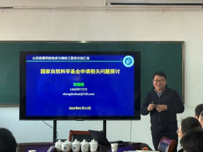 为提升我系教师国家自然科学基金申报能力与教学水平,2026年1月13日下午,地质与测绘工程系成功举办基金申报指导与课堂教学交流会。会议特邀河南理工大学郑德顺教授、太原理工大学孙蓓蕾教授进行指导,系全体教师参会。