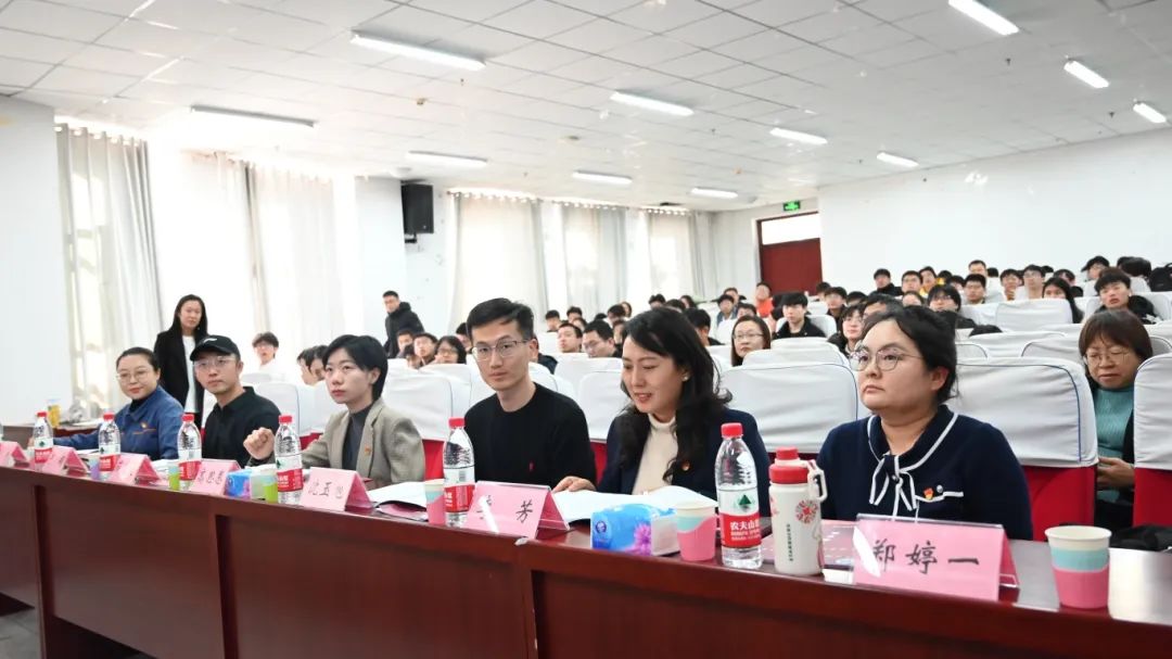 主讲嘉宾和听课师生间进行了互动问答,同学们围绕时代新人精神内涵、党性修养提升等多方面踊跃提问,现场气氛热烈,掌声不断。活动期间,与会人员一同观看了微视频《锦绣太原城》MV和太原市时代新人宣传片,领略了太原5000多年文明史和2500多年建城史的深厚底蕴,感受了新时代奋斗者赓续红色血脉、发扬光荣传统的家国情怀。大家共同朗诵《青春宣言》,表达青年学子对伟大祖国的美好祝愿,展现新时代大学生“请党放心、强国有我”的青春誓言。