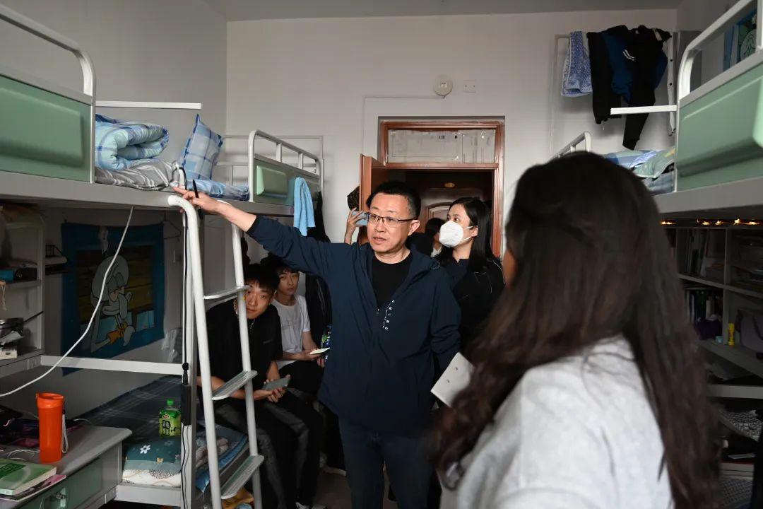 为切实做好学生宿舍的卫生安全工作,增强同学们对安全隐患问题的重视,督促同学们改善宿舍卫生,培养学生自我约束、自我管理的生活习惯,营造一个良好的生活氛围。4月19日学生工作部学生管理科科长朱玮,我系党总支副书记李芳以及辅导员闫光美老师、王小清老师,张珍凤老师深入学生宿舍走访看望了我系学生。