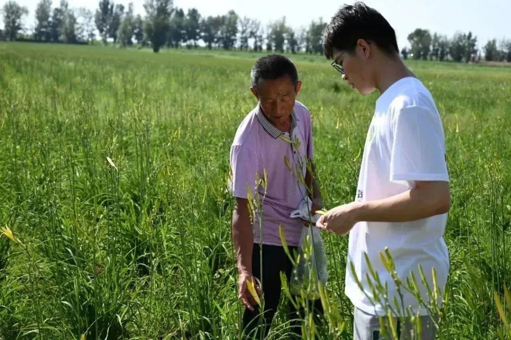 8月7日下午,实践队员在村干部唐万带领下到达黄花菜地,唐万给实践队员们讲述黄花采摘方法和注意事项:黄花采摘一般在清晨或者是夜晚进行,当露珠浸湿黄花后,黄花变得非常脆,轻轻一掰就能摘下,采摘时要注意选取长而黄的黄花,短又绿的黄花不够成熟,一些已经开了花的黄花要立即采摘后进行处理。随后,实践队员进行黄花采摘工作,切身体验到黄花抢收的辛苦和不易。