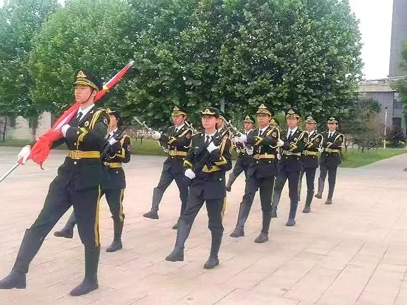 清晨七时整,升国旗仪式正式开始。国旗仪仗队的同学们迈着整齐划一、铿锵有力的步伐,护送着五星红旗正步走向旗杆。
