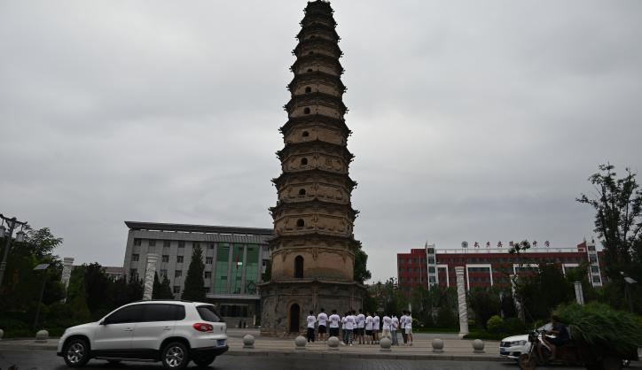 最后,大家到了武乡的地标性建筑——千佛塔。这是一座瘦高挑的八角十三级攒尖顶清代砖塔,如一把利剑直插霄汉,至今已经有三百余年的历史。实践队员纷纷驻足观看,深刻感受到了武乡县深厚的历史底蕴。