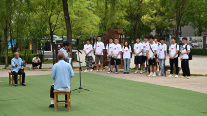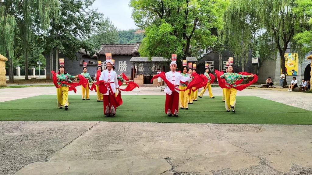 随后,实践队员们到达八路军文化园观看顶灯表演。表演一开场,就以其独特的形式吸引了队员们的目光,表演老师头顶装有蜡烛的碗,随着步伐的移动和身体的摆动,展现出各种各样的情节和故事,那整齐而有力的舞步,巧妙多变的队形,无不彰显着演员们的精湛技艺和团队协作。让大家深刻感受到了顶灯这一民间艺术的独特魅力。