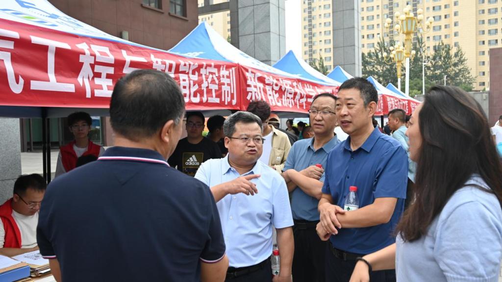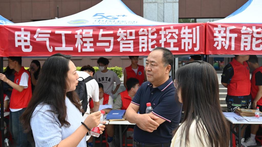 学校领导和系领导老师们亲临迎新现场,关注新生动态,了解新生们的报到情况,亲切的与家长们交流。