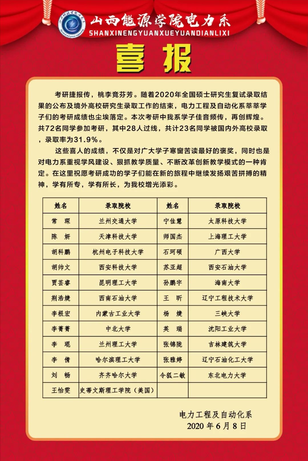 在2020年考试中,电力工程及自动化系的学子们成功渡过了考研和国家电网招聘考试第一批的难关,在此对他们表示热烈祝贺!