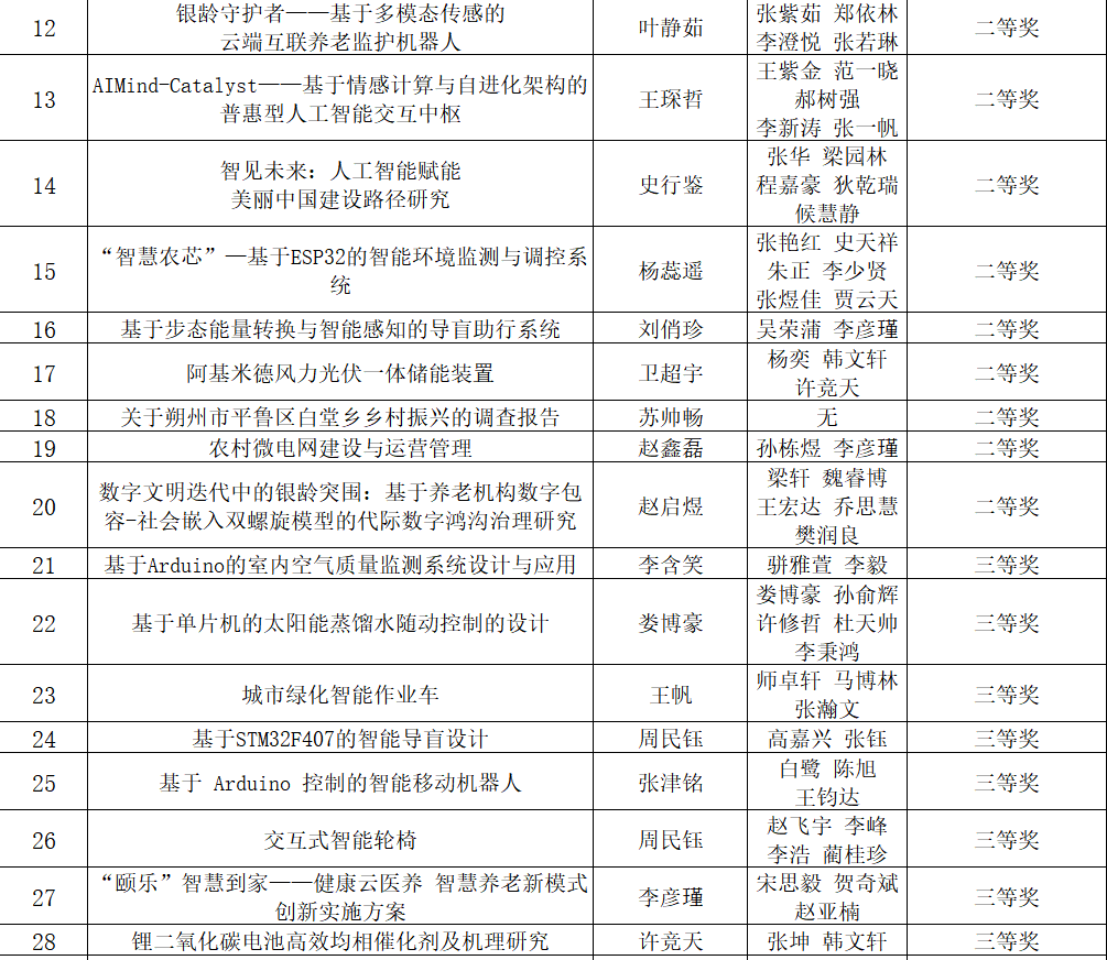 为深入贯彻落实党的二十大和二十届三中全会精神,深入实施科教兴国战略、人才强国战略、创新驱动发展战略,进一步引导学生努力培养科学精神和科学态度,电气与控制工程系“挑战杯”大学生课外学术科技作品竞赛落下帷幕。评委小组综合社会价值、实践过程、创新意义、发展前景与团结协作这几个要素,对各个项目做出了公平公正的评分,现将竞赛结果公示如下:
