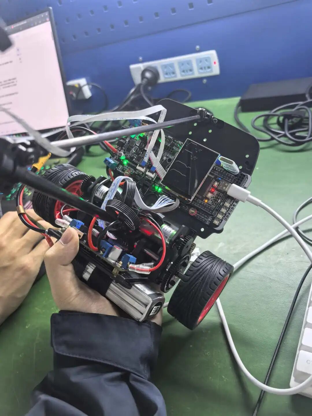 赛前,同学们在实验室里分秒必争,反复调试软硬件,优化代码,反复测试车模在赛道的稳定性。从车模组装,硬件设计到程序优化,大家分工协作,不放过任何细节,只为在赛场上呈现最佳状态。