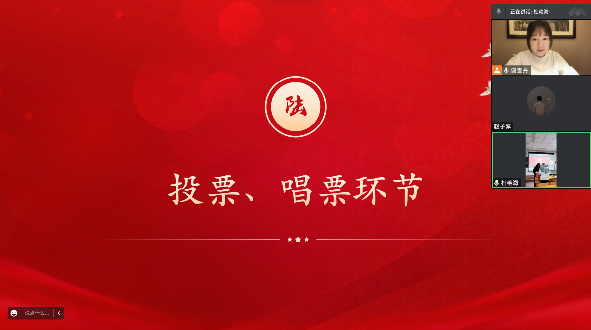 谢雪丹老师介绍了本次学生代表大会召开的目的及意义,肯定了在疫情形势如此严峻的情况下,学生会各项工作的有序推进与学生会每位成员的付出。鼓励广大学生干部在学有余力的情况下通过学生工作锻炼实践创新能力,同时也要不断自我反省,提高工作认知与积极性,面对错误行为敢于亮剑,摧毁不正之风。