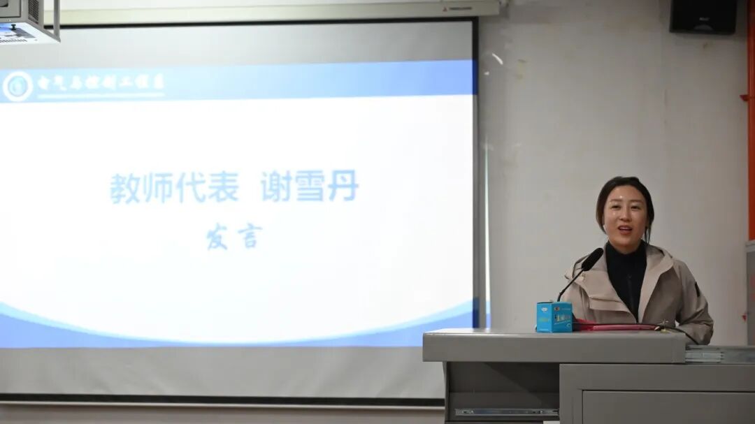 作为教师代表,谢雪丹老师以自身成长经历为切入点,叮嘱同学们要抓住大学这个关键的专业知识学习阶段,学会主动规划、自主探究,在实践中锤炼能力、突破自我;同时提醒同学们协作共赢,珍惜同窗情谊,在集体中塑造更成熟的自己。