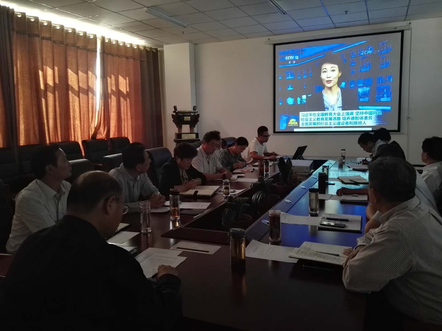 9月11下午,学院党委理论学习中心组召开学习会议,第一时间专题学习了习近平总书记在全国教育大会上的重要讲话精神。党委书记董峰主持,在校院领导、党委理论学习中心组成员参加了学习。
