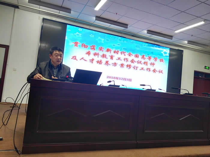 12月3日,我院在综合教学楼二层报告厅召开贯彻落实新时代全国高等学校本科教育工作会议精神及人才培养方案修订工作会议。院党委委员、副院长孟文俊,教务处处长王永安,各系部分管教学工作的副主任、全体教研室主任及教务处有关人员参加会议。会议由王永安主持。