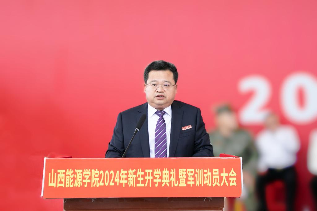 校党委副书记、院长冯国瑞致辞。冯国瑞院长从“大师”“大器”“大爱”三个方面,全面介绍了bat365官网师资建设、专业建设、教学科研、文明创建等方面取得的丰厚成果。冯院长强调,2024级新生非常荣幸,一入校就能参与到关乎学校未来发展的本科教学合格评估这一重大事件当中,希望大家能以优异的表现,为学校迎评促建充实力量、增添光彩。冯国瑞院长对新生提出四点期望:一是立大志,涵养家国情怀,砥砺强国之志;二是明大德,锤炼高尚品格,引领崇德向善;三是成大材,淬炼过硬本领,厚植勤学善思的浑厚内功;四是担大任,不负青春韶光,肩负民族复兴的时代重任。最后,冯国瑞院长勉励同学们要立足能源国情,锚定强国目标,瞄准能源科技前沿,为中国式现代化贡献能源人的力量。