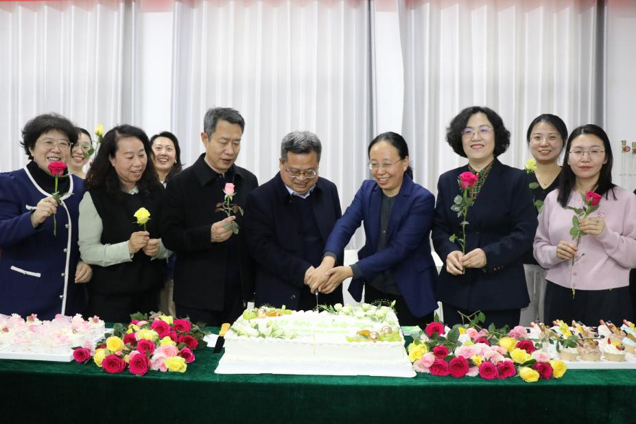 冯国瑞书记、桑楠院长与现场女职工共同切分节日蛋糕,以象征圆满甜蜜的仪式,共庆这一温馨时刻,传递学校党委对女职工的深切关怀。
