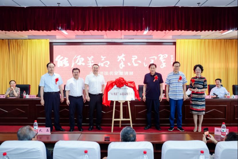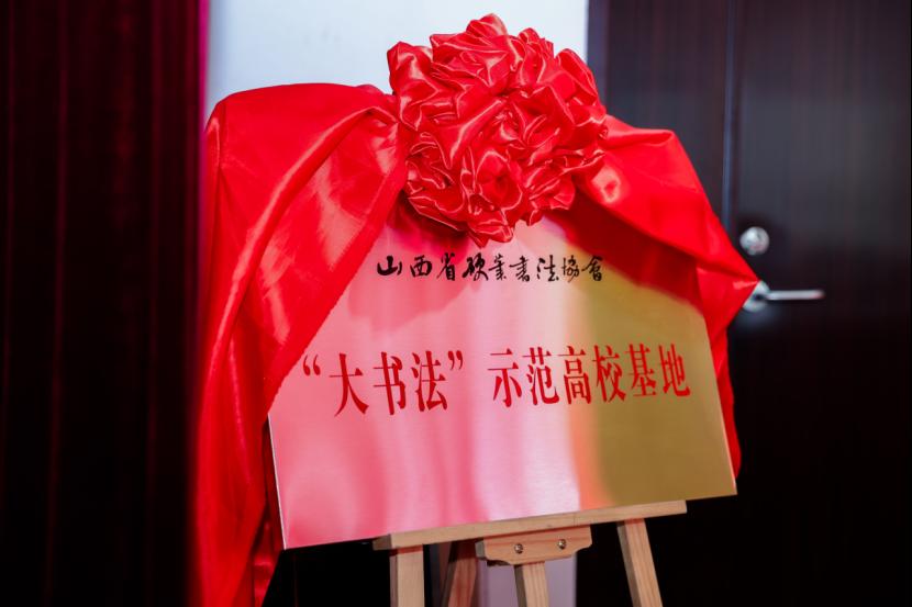 山西省书法家协会主席石跃峰、中国硬笔书法协会副主席、山西省硬笔书法协会主席赵国柱、山西省教育厅二级巡视员胡雅林、山西省硬笔书法协会执行主席白杰、山西省教科文卫体工会马仕仁和学校党委书记冯锋,党委副书记、院长冯国瑞共同为山西省硬笔书法协会“大书法”示范高校基地揭牌