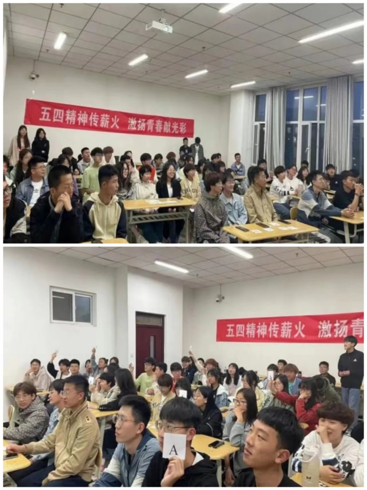 我系于5月4日举办了以“五四精神传薪火,激扬青春献光彩”为主题的知识竞赛。专职辅导员贺慧老师也来到了活动现场,她希望青年学生能以史为鉴,大力弘扬五四精神,把青春的热情、活力和奋斗,绽放在社会主义现代化建设的道路上、盛开在学院发展的征途上,谱写在自己青春的乐章上。