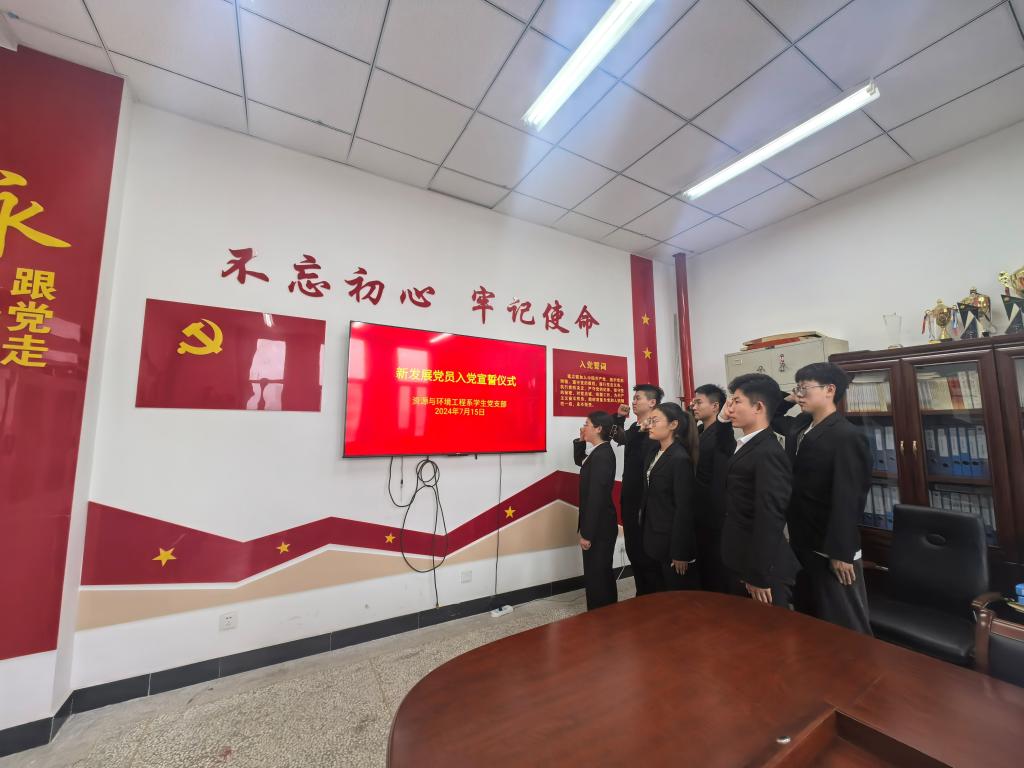 为促使新党员不仅在行动上入党,更要在思想上入党,积极做到对党忠诚,积极工作,践行好入党誓词;根据《中国共产党章程》和《中国共产党发展党员工作细则》规定,资源与环境工程系学生党支部开展了新发展党员入党宣誓仪式。