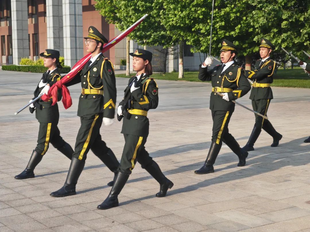 学生代表郑诗颖同学在国旗下进行演讲,新时代的大学生应铭记历史,珍惜当下学习时光,努力提升自我。要传承革命精神,坚定理想信念,关注国家发展,积极参与社会实践,为实现中华民族伟大复兴的中国梦贡献力量,展现青年的担当与使命。