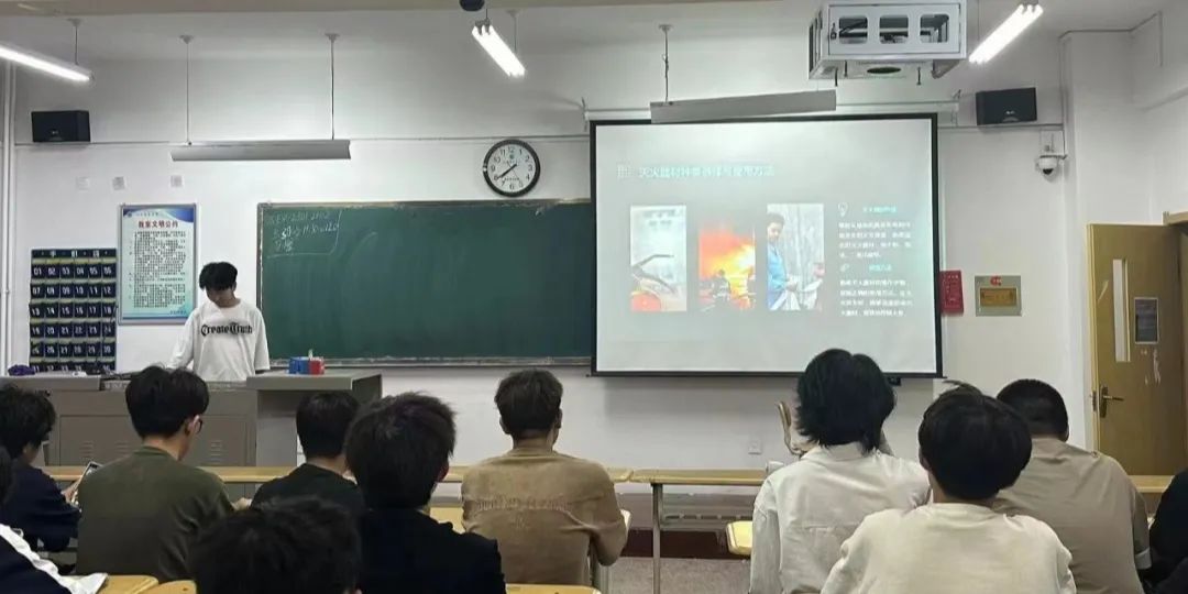 消防安全同样是实验室安全的重要组成部分。张志成同学从灭火器材的种类、使用方法、潜在隐患、火灾报警系统的操作以及疏散逃生路线的规划等方面,为全班学生普及了消防安全知识,进一步增强了大家的安全防范意识。