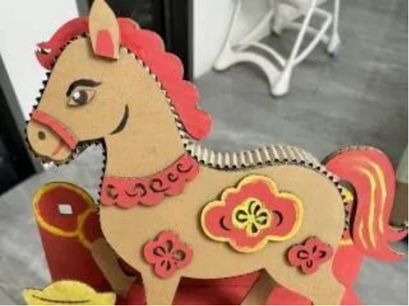 丙午新岁,以瓦楞纸为骨,剪纸纹样为魂,打造马年主题创意作品。借传统纹样的雅致,融环保初心与年味氛围,寄寓马到成功的新春祝愿,让传统韵味与环保理念在纸间绽放,传递满满福泽。