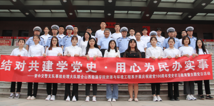 为贯彻党史学习教育,落实党的十九大和高校思想政治工作会议精神,构建“全员育人、全方位育人、全过程育人”大思政格局,积极推进党史学习教育走深走实,开展“我为群众办实事”实践活动。2021年6月30日上午,资源与环境工程系党总支联合晋中交警支队事故处理大队开展“交通安全进校园”联合主题党日活动。学院党委副书记马光生、资环系书记马蔚东、主任王相瑞以及部分教师、学生党员代表参加。