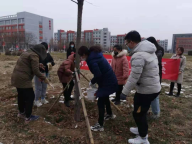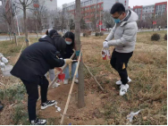 “与时俱进跟党走,志愿服务献青春。”即使寒风扑面,也挡不住我们党员前进的步伐。下午3点30分,党员同志们在综合楼北门前集合,后勤工作人员为党员同志们分配好了刷漆工具。领导班子成员率先垂范,全体党员表现出极大的热情。大家三三两两聚拢在树旁,用准备好的刷子蘸上石灰水,认真细致得为每一棵树木裹上一层银白的外衣。