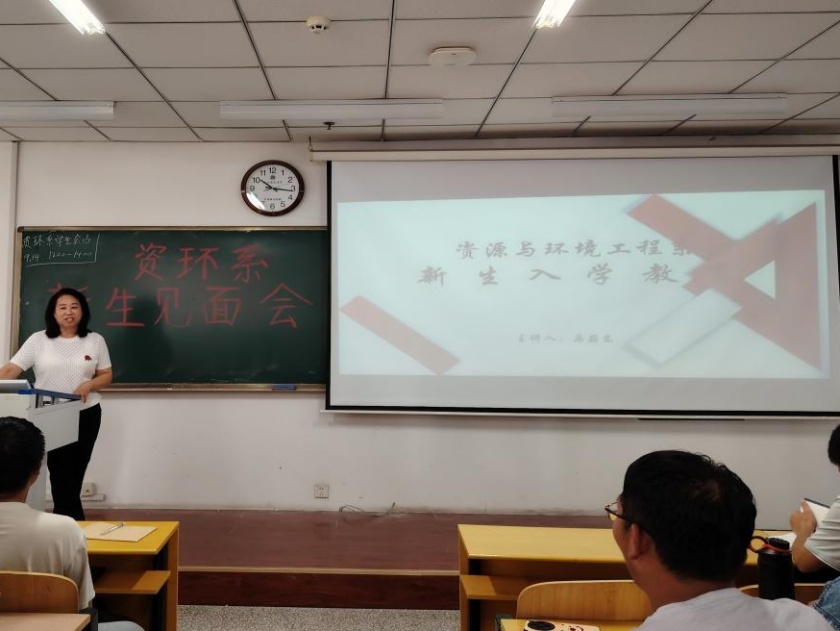靳宁副主任为新生介绍了我系能源与环境系统工程专业和环保设备工程专业的专业特色、专业背景、人才培养目标及方向、课程体系等。让学生初步了解本专业学习内容、就业方向、就业岗位具有的素质和能力等,为今后的专业学习打下良好的基础。
