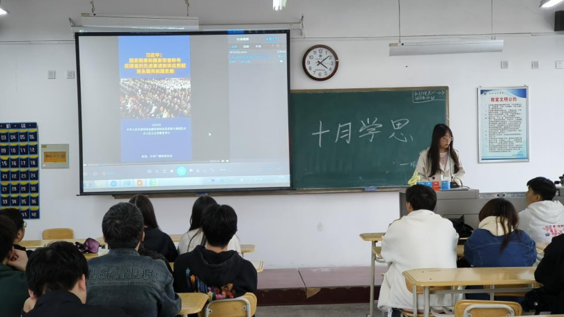 活动伊始,辅导员武瑶老师带领同学们学习了习近平总书记于2024年9月29日在国家勋章和国家荣誉称号颁授仪式上发表的重要讲话。勉励学生应以国家勋章和荣誉称号获得者为榜样,将个人理想与国家的繁荣昌盛、人民的幸福安康紧密相连。武瑶老师进一步指出,爱国与荣校是相辅相成的,作为能源的一份子,同学们应以热爱学校为起点,为学校的繁荣发展贡献自己的一份力量。她鼓励同学们不断学习新知识、掌握新技能,为国家的前进贡献青春力量,实现自我价值,共同书写人生的华章。