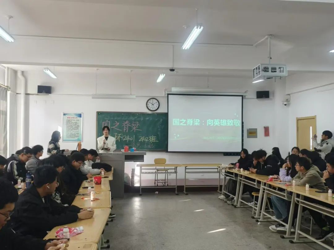 在时代的浪潮中,总有一群人如巍峨高山,挺起了国家的脊梁,他们是民族的英雄,是我们前行路上的璀璨星辰。2024年11月28日,在辅导员贺慧老师的带领下能环2401-2402班共同举办了一场意义非凡的学思活动:“国之脊梁——向英雄致敬”!通过本次活动,同学们深入探寻那些英雄人物的伟大事迹,深刻领悟科学家们的崇高精神。向榜样学习,向英雄致敬!