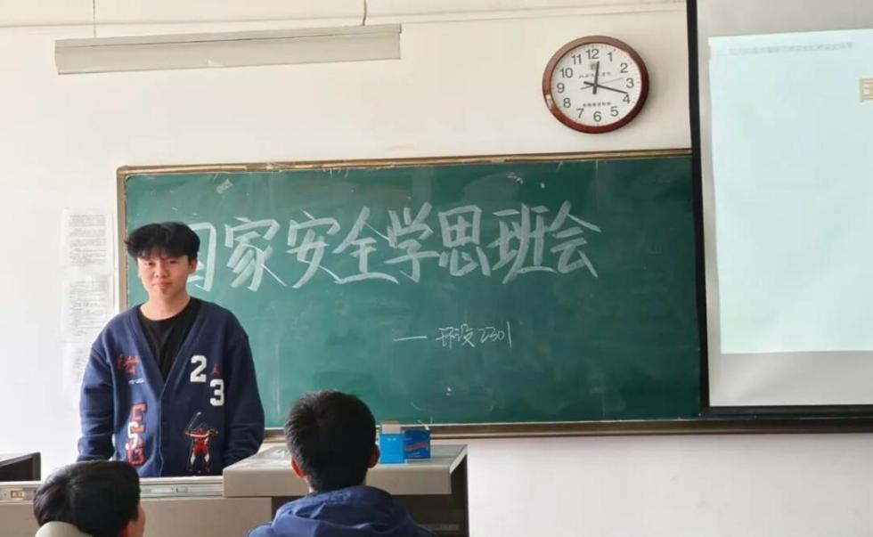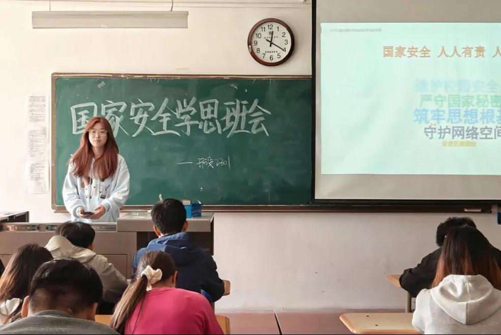 为深入贯彻落实习近平总书记关于总体国家安全观的重要论述,增强学生国家安全意识,筑牢国家安全人民防线,按照学校及系部安排,环设2301班于2025年9月24日举行了一场别开生面的主题班会。