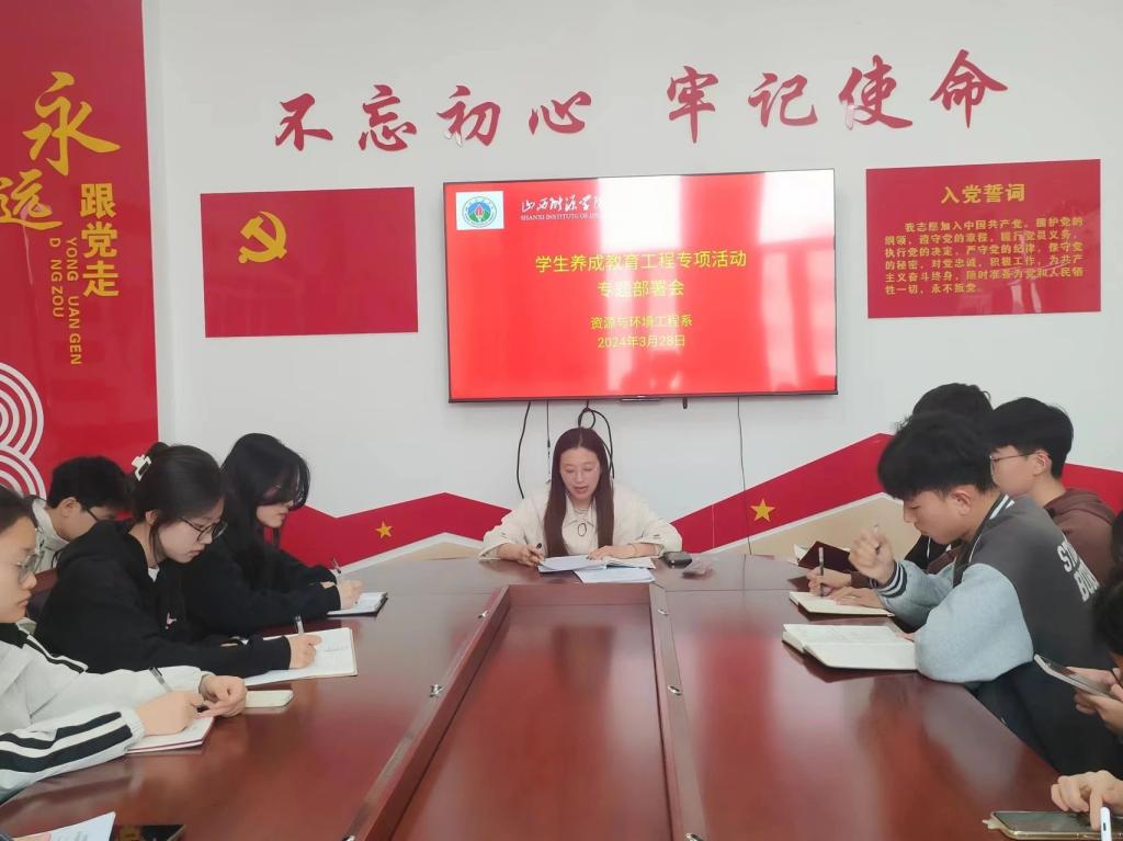 为积极落实响应bat365官网“双养工程”的号召,全面落实立德树人根本任务,进一步提升教育质量,培养我系学生的综合素质。3月28日中午,资源与环境工程系于产学研401会议室召开学生养成教育工程活动动员部署会议。团委学工办副主任李晓建老师主持此次会议,我系各班团支书与班长以及学生会干部参会。