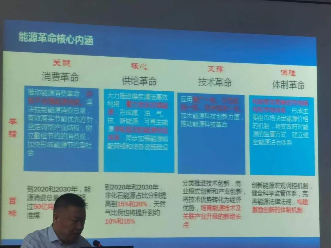 最后,武教授就能源革命内涵做了详细的介绍,其是以消费革命为关键,供给革命为核心,技术革命为支撑,体制革命为保障的综合内涵。根据不同的举措,告诉我们要推动能源消费革命,要树立勤俭节约的消费观,加快形成能源节约型社会。大力推进煤炭清洁高效利用,加强能源输配网络和储备设施建设,加大能源科技创新力度,推动能源科技革命,同时也要构建有效竞争的市场结构和体系。