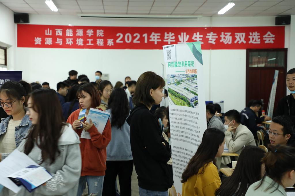 为切实做好学院毕业生就业工作,大力构建毕业生与用人单位的交流平台,积极为用人单位输送应用型人才,我系于2021年4月22日举办“2021年毕业生专场双选会”。本次招聘会共有山西晋环科源环境资源科技有限公司、山西建邦集团有限公司、山西光大焦化气源有限公司、山西维斯塔清洁能源股份有限公司等20余家企业参加,岗位众多,为我系及其他系毕业生提供了大量就业机会。