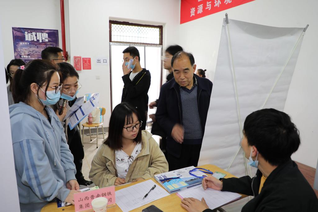 学院领导对本次双选会给予了高度重视,副院长孟文俊莅临招聘会现场,资环系马蔚东书记、王相瑞主任等系领导均来到招聘会现场,深入了解2021届毕业生求职情况,与学生及用人单位进行面对面交流。孟文俊副院长详细询问了相关招聘单位的规模、招聘岗位、招聘要求以及薪资待遇等情况。孟文俊副院长进一步提出,希望更多招聘单位能与我院进一步开展校企合作,加快建立实习实训就业基地,提前为企业做好人才的储备,也为毕业生搭建更高的实践平台。