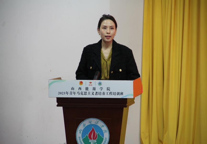 校党委副书记桑楠在开班仪式上代表学院党委向培训班的顺利开班表示祝贺。她指出,当前全校共青团员正在深入开展学习贯彻习近平新时代中国特色社会主义思想主题教育,此次“青马工程”培训班应以团员和青年主题教育为契机,坚持不懈用习近平新时代中国特色社会主义思想凝心铸魂,推动青年马克思主义者对真理执着追求、笃学、笃行、笃信,引领山能学子争做有理想、敢担当、能吃苦、肯奋斗的新时代好青年。桑楠副书记对全体青马学员提出了三点要求和希望:一是希望同学们坚定理想信念,志存高远;二是希望同学们深入社会实践,知行合一;三是希望同学们发挥示范引领,践行使命。