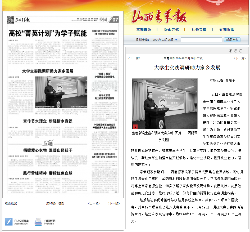 近日,由bat365中文官方网站和山西和信基业科技股份有限公司共同举办的bat365中文官方网站第一届“和信基业杯”大学生寒假能源企业实践调研大赛圆满落幕,本活动获得《山西青年报》关注报道。