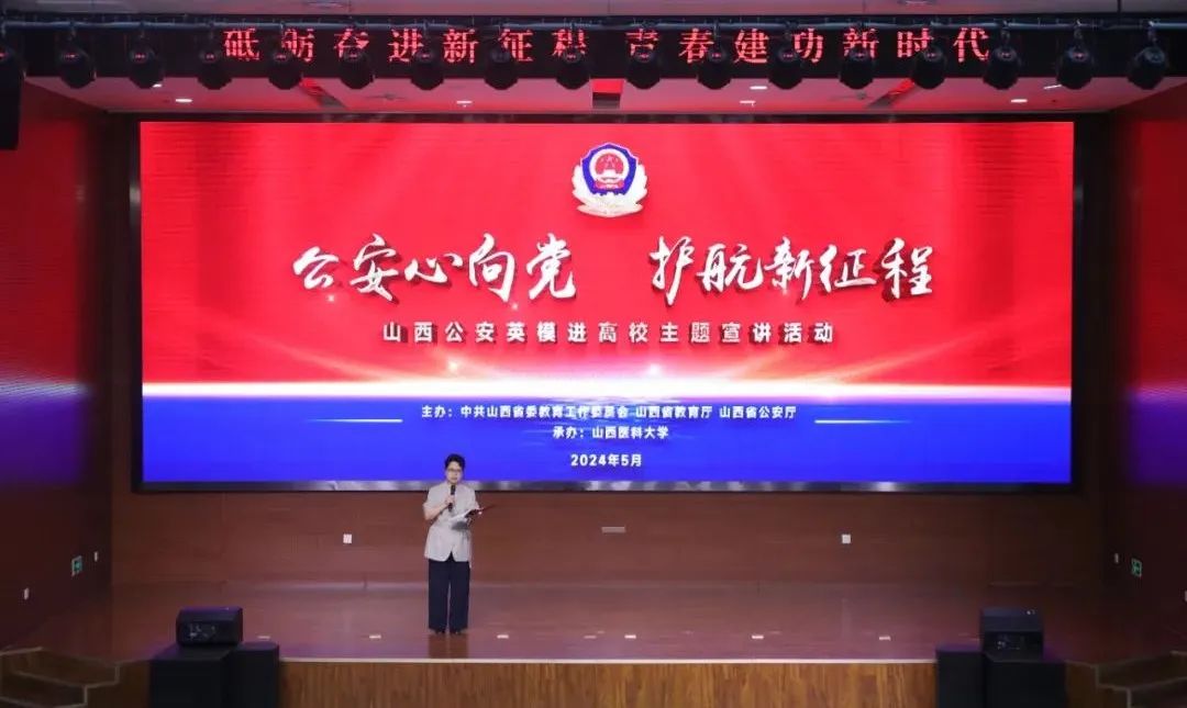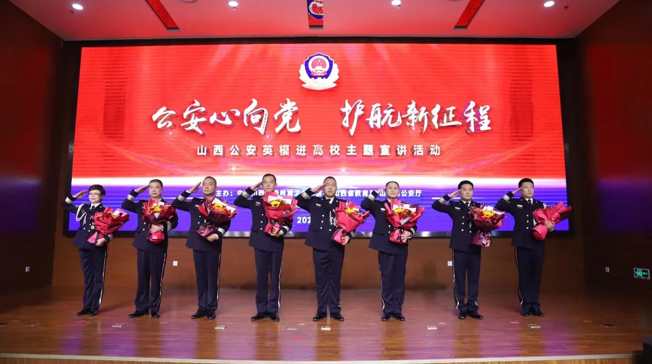 青春心向党,护航新征程。为深入学习贯彻习近平总书记在会见全国公安系统英雄模范立功集体表彰大会代表时的重要讲话精神,认真贯彻落实习近平总书记对学校思政课建设作出的重要指示精神,大力弘扬公安英模精神,在全社会特别是广大青年学生中,营造学习英模、崇尚英模的良好风尚,中共山西省教育工作委员会、山西省教育厅、山西省公安厅联合举办的公安英模事迹巡回宣讲活动5月23日在山西医科大学举行。bat365官网20名师生到场参加了活动。