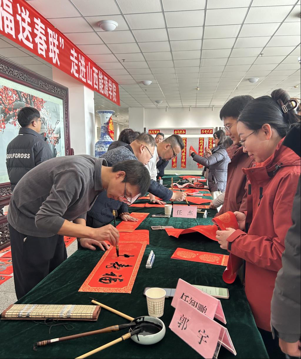 此次活动由学校党委副书记曲晋山主持。学校党委副书记、院长桑楠做了主题讲话,她强调春联寄情,墨香传意,把新春的祝福转化为奋进的动力,在新的一年里砥砺奋发,勇毅前行,为建设特色鲜明的高水平能源大学奉献我们最大的力量。山西省硬笔书法协会执行主席白杰代表嘉宾致辞。学院副院长葛波蔚、穆晓芳参加了此次活动。