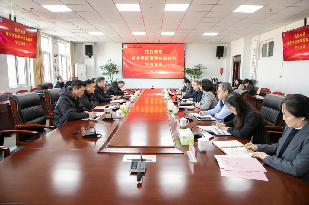 1月20日,萍乡学院党委书记邱晓辉一行来校交流。党委书记冯国瑞、副院长穆晓芳及相关职能部门负责人与来宾座谈交流。