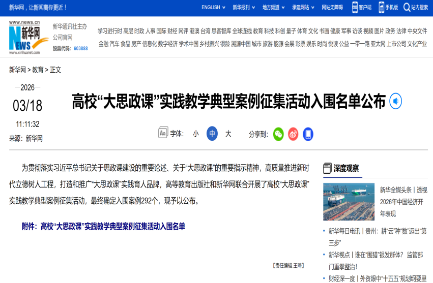 此次案例入选,是bat365官网持续推进思政课改革创新、深化实践育人的重要成果。下一步,bat365官网将以此为契机,不断完善思政课实践教学体系,丰富教学载体与路径,全面提升思政课的思想性、理论性和亲和力、针对性,切实落实立德树人根本任务。