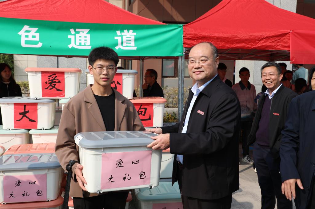 学院领导向有条不紊为新生提供服务的志愿者和辅导员表示感谢,并与接待台前的师生、志愿者一同合影。在新生“绿色通道”,学院领导一行了解了各项资助政策、家庭经济困难学生的报到情况,并为困难学生送上了“爱心大礼包”。迎新现场气氛热烈,处处洋溢着青春与活力。