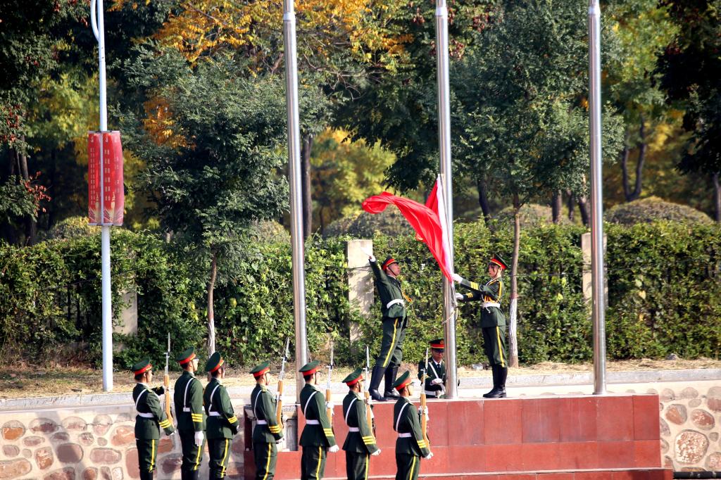 承训部队首长代表全体教官作出了科学施训、严格管理、身先士卒、率先垂范、严守纪律、履职担当的郑重承诺。院党委书记董峰向军训团授bat365中文官方网站军训团团旗。