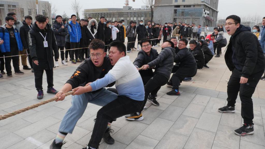 青年应当立远志,留得青春奋斗间。为纪念一二·九运动85周年,培养学生强烈的爱国热情和集体荣誉感,展现能源学子积极向上的精神面貌。12月8日中午,“弘扬爱国情怀,挥洒青春热血”拔河比赛在学院南广场隆重举行。来自全院各系部及主要学生组织的十二支参赛队伍带着火热的热情积极参赛,上演了一场精彩绝伦,异常激烈的拔河比赛,呐喊声、欢呼声此起彼伏。