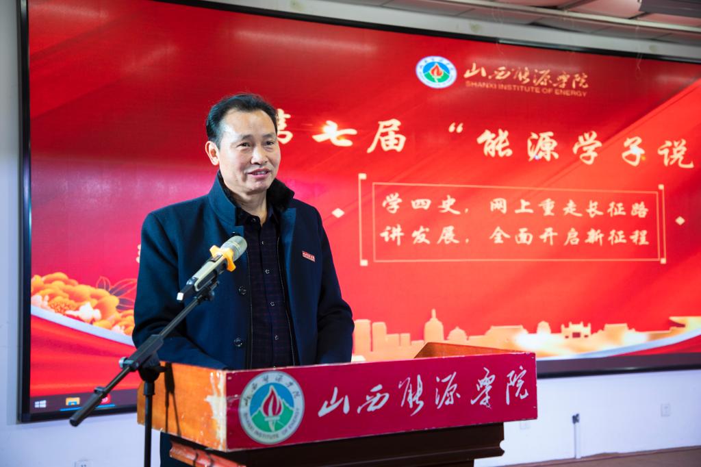 学院党委副书记张春有发表了《高举爱国主义旗帜,开启全面发展新征程》开场辞,他指出“能源学子说”作为我院特色精品思政项目,关注国家重大时事,坚持爱国主义教育主线。作为学生工作部门在学生思想政治教育的重要抓手,以学习宣传贯彻习近平新时代中国特色社会主义思想、党的十九大、十九届二中、三中、四中、五中全会精神和高校思想政治工作会议精神为宗旨,贴近学生,贴近思想政治教育,贴近时事,学生们采用自己喜闻乐见方式讲清党的理论、讲透党的政策。从2018年启动,至今已举办七届。在学院领导关心下和广大学生的积极参与下成长、发展。希望继续采取学生喜闻乐见的形式,为同学们搭建更多创造成功契机平台,提升自身价值和发展能力,更加地展示能源学子的精神风貌,进一步引导广大同学深入学习领会习近平新时代中国特色社会主义思想,勤学励志、奋发图强,高高弘扬爱国主义精神,积极培育和践行社会主义核心价值观,将个人成长成才的青春梦与中华民族伟大复兴的中国梦有机结合起来。