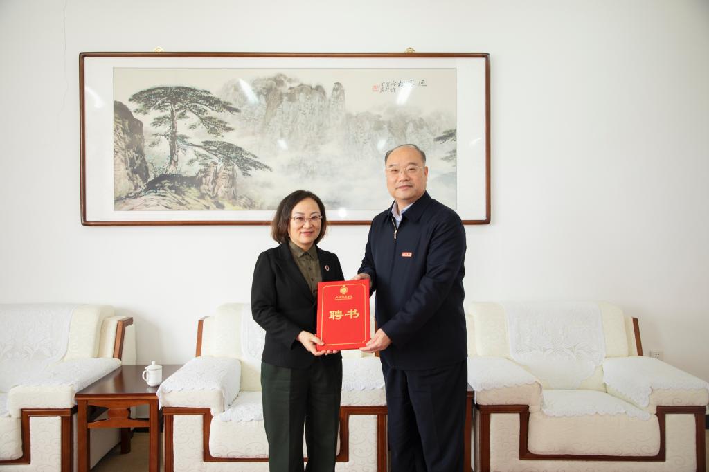 报告会前,学院党委书记董峰代表学院聘请了崔韶光女士为bat365中文官方网站思政课特聘教授,并颁发了聘书;梁卫国院长为崔韶光女士佩戴了校徽。